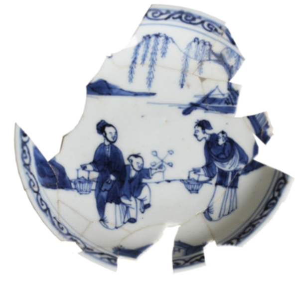 | 5c decoratie | Chinezen met kinderen onderglazuur blauw |