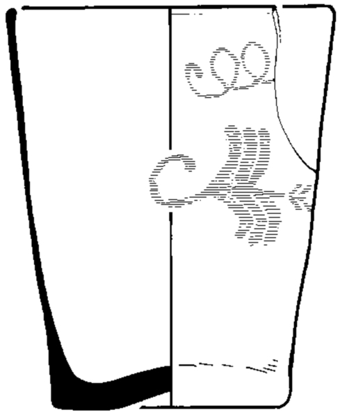 | 4b | dikwandige conische beker, ook met radgravure, verdikte bodem, standvlak met (eventueel weggeslepen) pontilmerk |