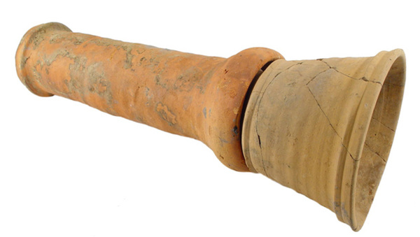 | 5d diversen | bodem uitgevijld om secundair te gebruiken als koppelstuk tussen aardewerken buizen (068-C01) en houten goot |