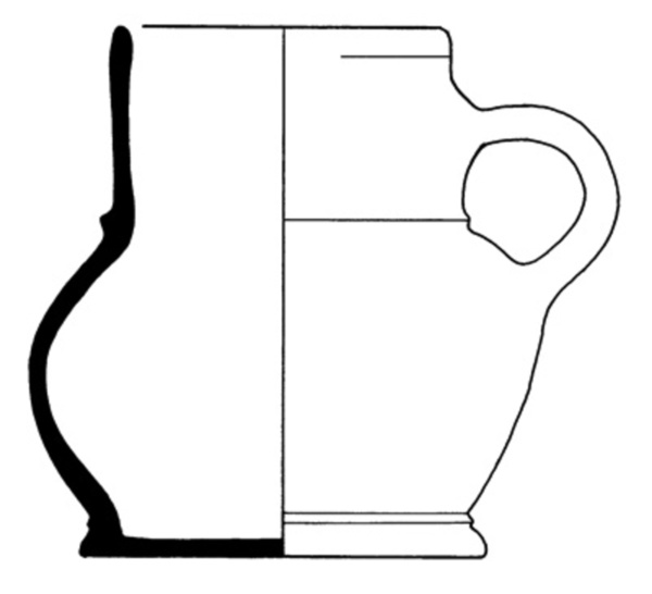 | 4b vorm | kan met afgeronde buikknik en iets toelopende hals met ribbel op halsaanzet en groef onderlangs rand, standvoet |