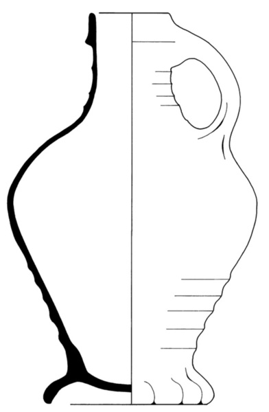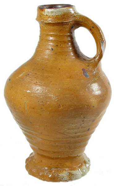 | 4b | bolle kan met afgeronde buikknik, schouder overgaand in hals, ribbels op schouder en hals, kraagrand, standring |