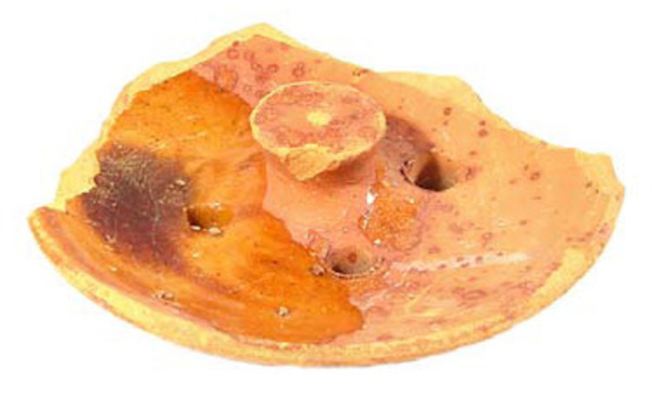 | 5d diversen | 4 luchtgaten, bovenzijde loodglazuurvlek knop, afgeplat |