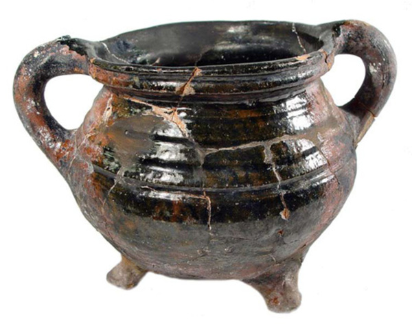 | 5b afwerking (kleur/glazuur) | inwendig loodglazuur met mangaanoxide, uitwendig spaarzaam loodglazuur met mangaanoxide |