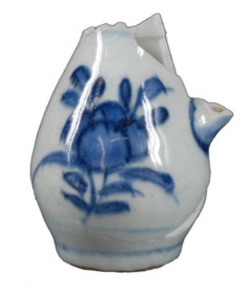 | 5c | blauwe beschildering, perziken? onderglazuur blauw |