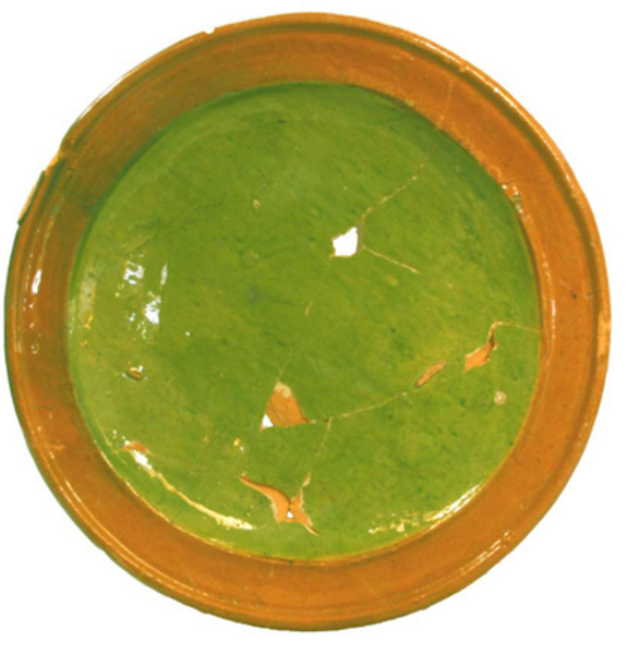 | 5b afwerking (kleur/glazuur) | inwendig loodglazuur met koperoxide |