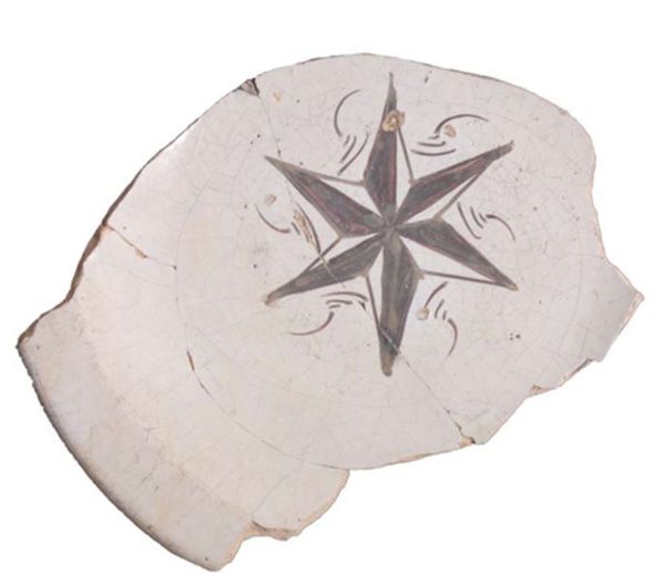 | 5c decoratie | paarse beschildering; spiegel: zespuntige ster inwendig: paars |