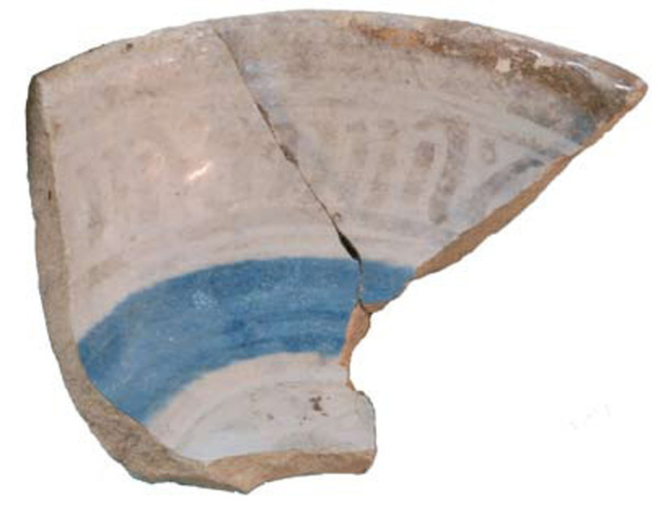 | 5c | inwendig: gestileerde Arabische letters in goud en een blauwe band; uitwendig: concentrische cirkels goudlustermajolica blauw, goud |