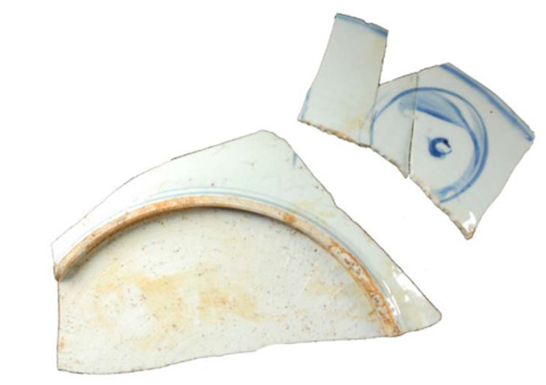 | 5c | blauwe beschildering; spiegel: landschap met boom; vlag: Wanli-rand onderglazuur blauw |