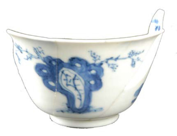 | 5c decoratie | blauwe beschildering; inwendig: strikken; uitwendig: Lange Lijs, zotje en boom onderglazuur blauw |