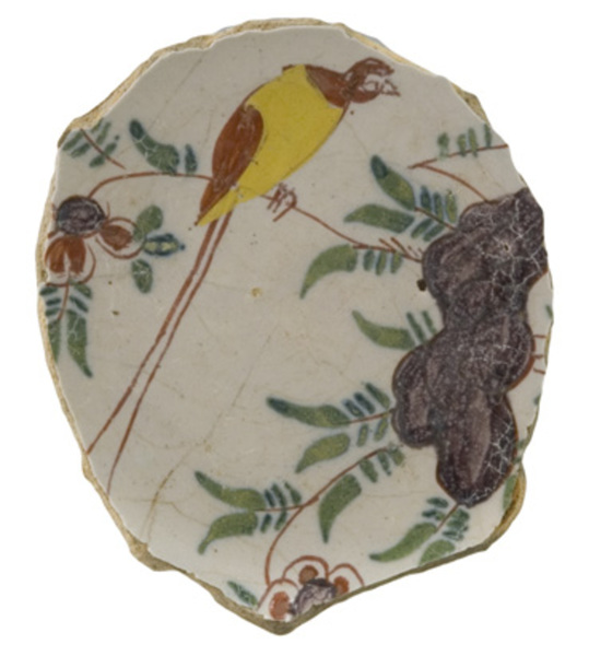 | 5c | op spiegel: paradijsvogel op tak polychroom |