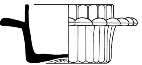 | 4b vorm | cilindrische botervloot met reliëf-decoratie met op halve hoogte uitstaande platte dekselrand, standring; persvorm |