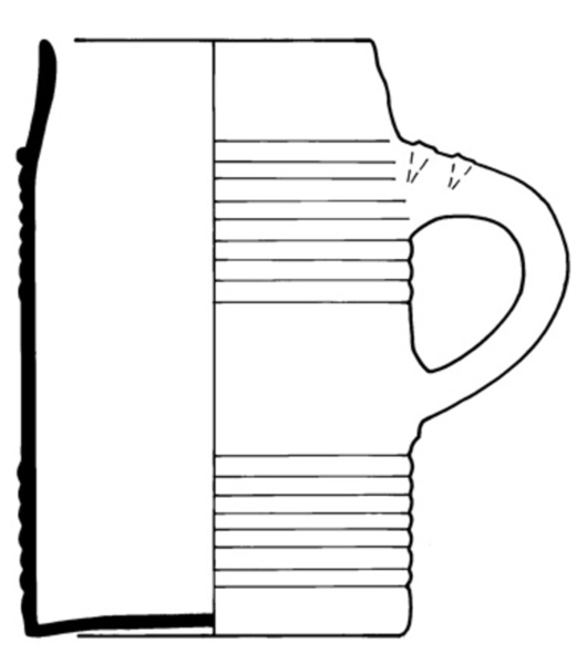 | 4b | cilindrische beker met afgeschuinde rand, diverse decoraties met/zonder ribbels, standvlak |
