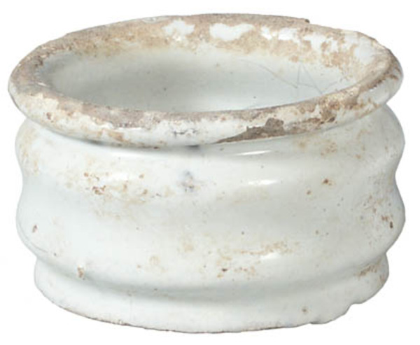 | 4b vorm | brede zalfpot met (vrijwel) cilindrische buik, ingesnoerde bodem en hals met uitgebogen rand, standvlak |