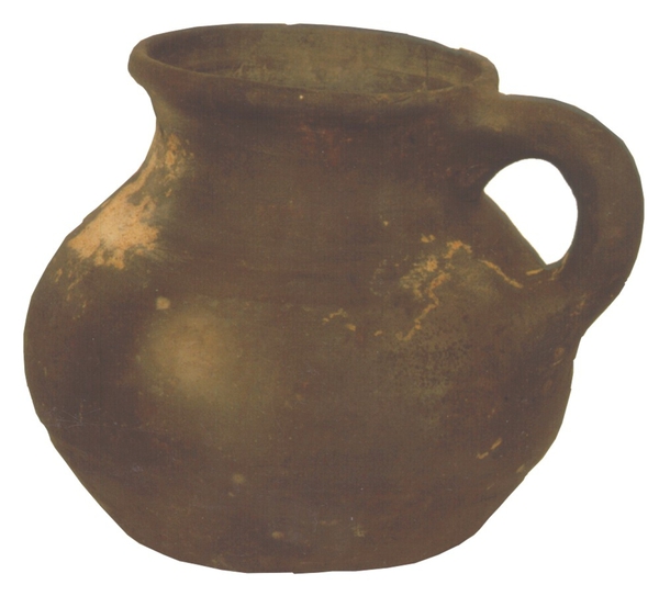 | 4b | bolle pispot zonder hals, uitgebogen rand met afgeplatte zijkant en dekselgeul, bodem met ziel |