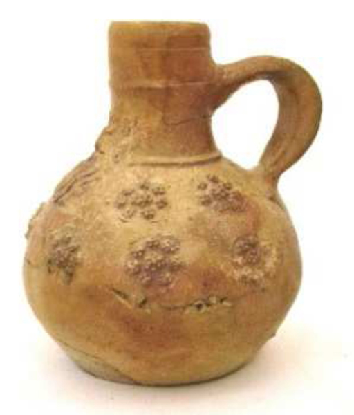 | 5c decoratie | baardman op hals en schouder (bovenste deel kop ontbreekt), rozetten van braamnoppen op bovenhelft buik |