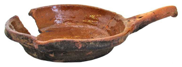 | 5d diversen | onderzijde zwaar beroet, schenklip links op 115 graden t.o.v. de steel |