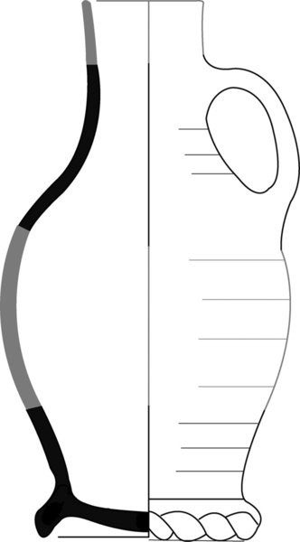 | 4b | slanke kan met hoge licht uitlopende hals en spitse rand, standring |