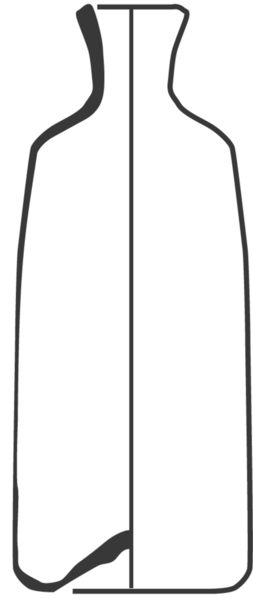 | 4b | cilindrische medicijnfles zonder- of met korte hals met uitstaande lip, opgestoken bodem met pontilmerk |