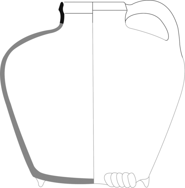 | 4b | bolle kan met hoge schouder, kraagrand zonder dekselgeul, lobvoeten |
