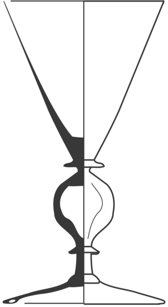 | 4b vorm | trechtervormig kelkglas met of zonder afgeronde of dikwandige bodem, met vierlobbige holle nodus- of balusterstam, met één of meer schijfjes, schijfvormige voet met pontilmerk |