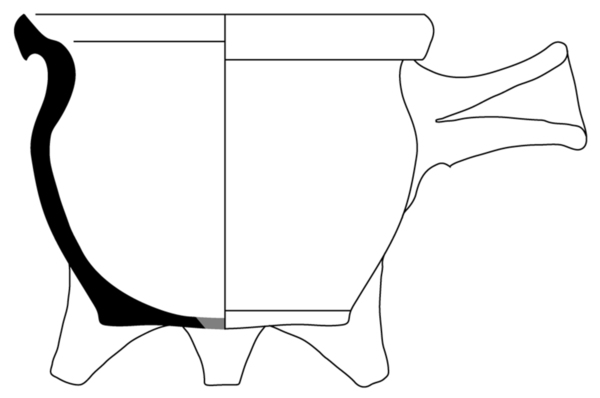 | 4b | bolle grape met een hoge schouder, kraagrand met dekselgeul, vlakke bodem met poten |