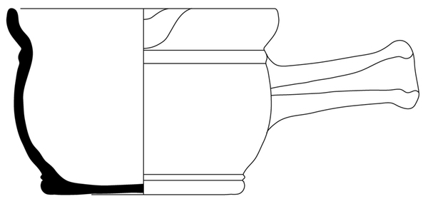 | 4b | bolle kachelpan met naar buiten geknikte holle rand met dekselgeul, rand afgezet met ribbel, standvoet |