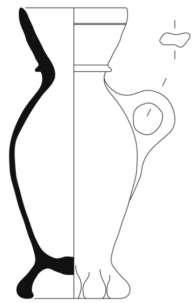 | 4b vorm | trechterbeker met klein lichaam en bolle trechter met ribbel op aanzet, standring |
