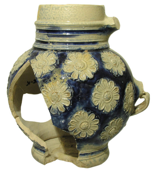 | 5c | appliques (bloemrozetten) binnen kobaltblauw glazuur blauw staart bij ooraanzet |