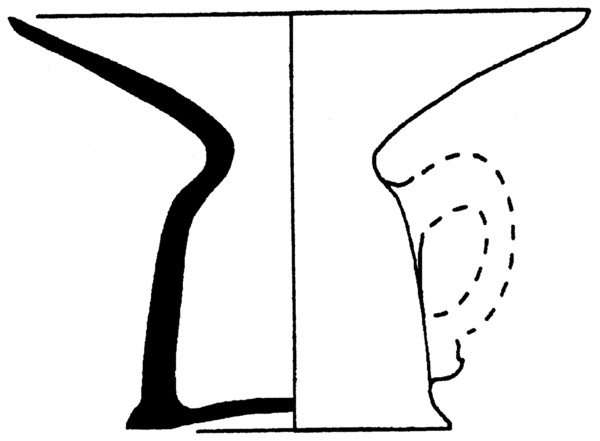 | 4b vorm | cilindrische kwispedoor met conische, wijd uitstaande opvangrand, op standvlak |
