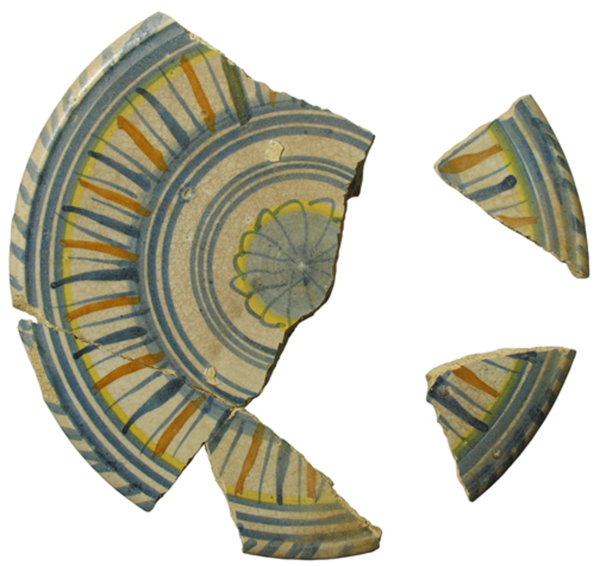 | 5c | bloemrozet binnen ornamentale rand, kabelrand inwendig: polychroom |