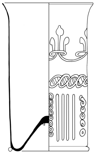 | 4b | cilindrische of licht conische beker met uitstaande lip, opgestoken bodem met pontilmerk en voetring |