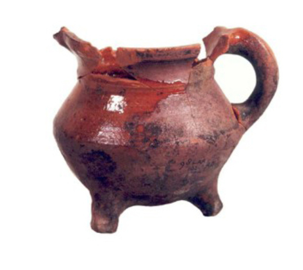 | 5d diversen | beroet, poten gesleten, dikkere wand dan de latere r-gra-19 uit Alkmaar |