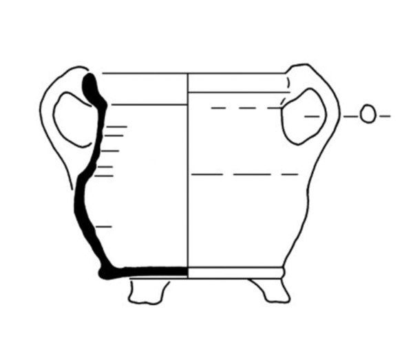 | 4b | bolle grape met cilindrische hals en kraagrand met dekselgeul, platte bodem met poten |