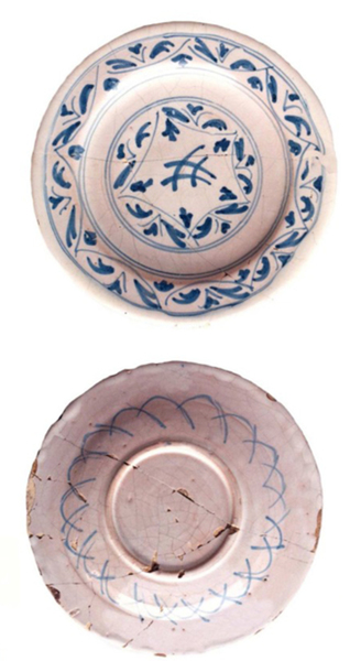 | 5a | tinglazuuraardewerk uit Italië, geelbakkend, okergeel baksel |