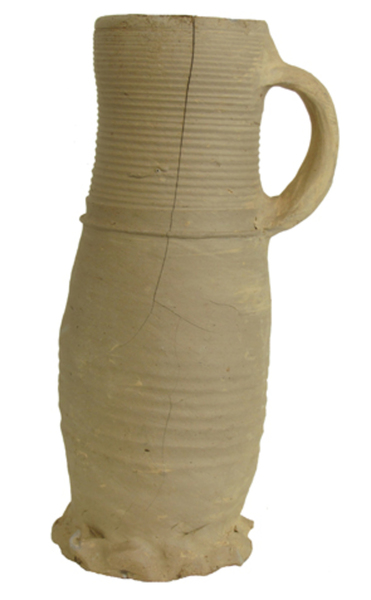 | 4b | lage bekervormige kan met kraag op de halsaanzet, iets verdikte hals, rechte rand, op standring |