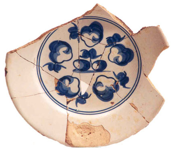 | 5c | blauw op wit beschilderd, spiegel: vruchten binnen twee concentrische cirkels blauw |