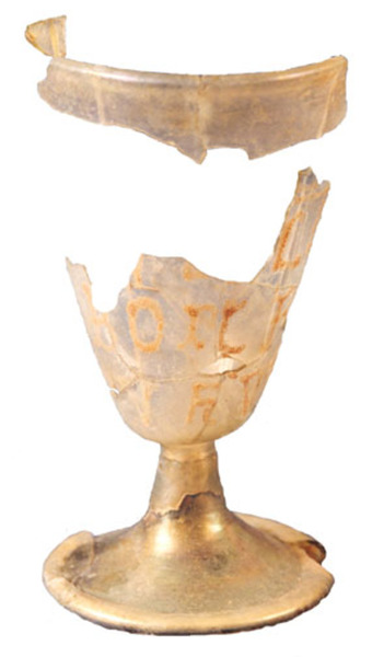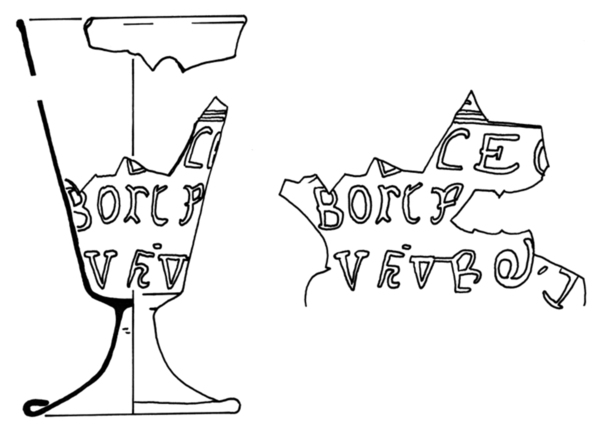 | 4b | slanke conische voetbeker, ook met draadversieringen, opgestoken ingevouwen hoge voet met pontilmerk |