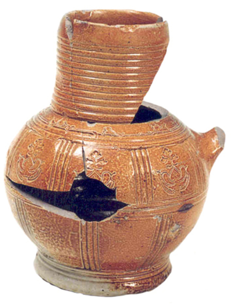| 4b vorm | kan met kogelronde buik en cilindrische hals met bundels ribbels op de hals, uiteenlopende decoraties, soms tweedeling van de buik, standvoet |