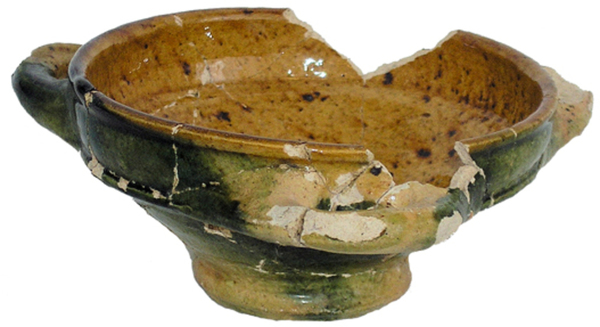 | 5b afwerking (kleur/glazuur) | inwendig loodglazuur met mangaanoxide, uitwendig loodglazuur met koperoxide |
