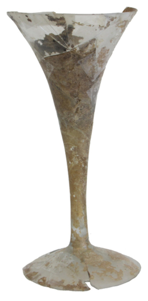 | 4b | trechtervormig kelkglas vloeiend overgaand in rechte stam, voet met pontilmerk, diverse sieruitvoeringen van stam |