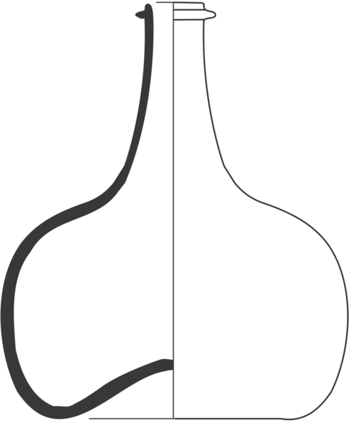 | 4b vorm | bolvormige wijnfles met licht uitstaande lip en V-vormige of afgeronde draad om de lip, opgestoken bodem met pontilmerk |