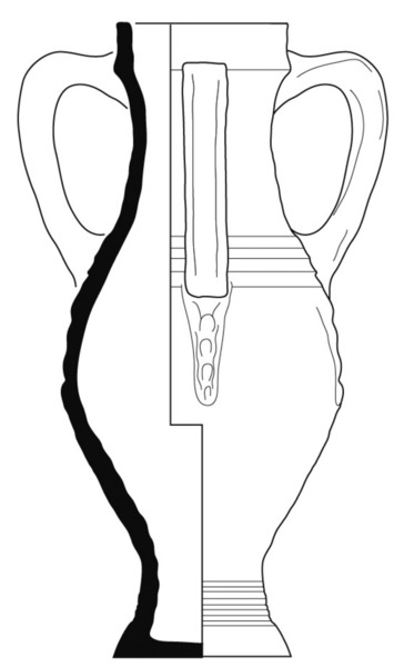 | 4b | hoge, peervormige drieoren kruik/beker met kraagrand, standvoet |