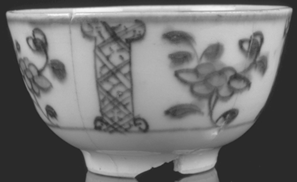 | 5c | inwendig: blauwe beschildering: vogels; uitwendig: bruine rand; blauwe beschildering: floraal blauw |