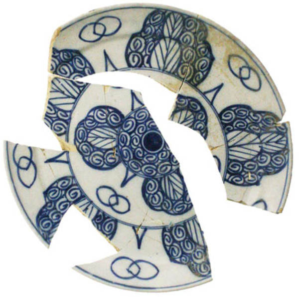 | 5c decoratie | ornamentaal bladmotief blauwe beschildering |