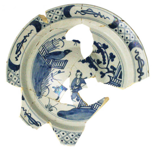 | 5c | staande figuur en vogel met landschap blauwe beschildering |