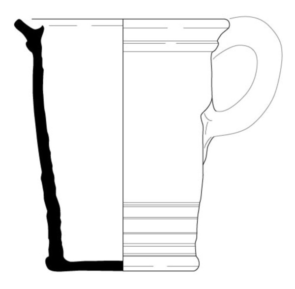 | 4b | tonvormige pot met sikkelvormige rand, ribbels op randaanzet en boven bodem, standvoet |