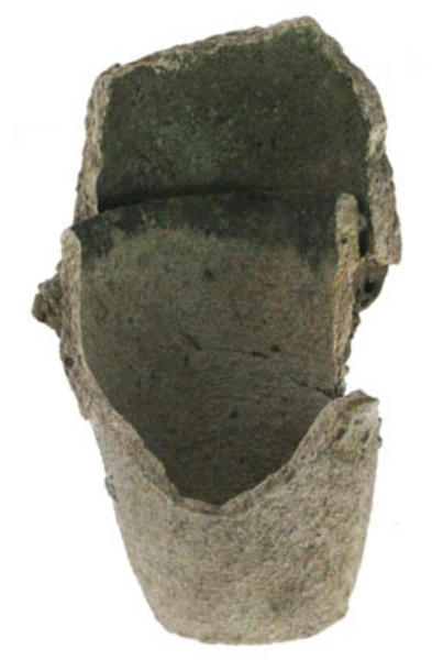 | 5d | zeer zandig baksel twee aaneen gekitte exemplaren, 1x compleet profiel en 1x fragment de bodem van het complete exemplaar is doorboord |