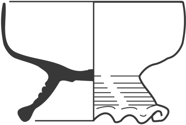| 4b | lage cilindrische licht buikige maigelein met gekruist ribbelpatroon of naar links of rechts draaiend ribbelpatroon, opgestoken bodem met pontilmerk, gewonden draadvoet en geknepen voetring |