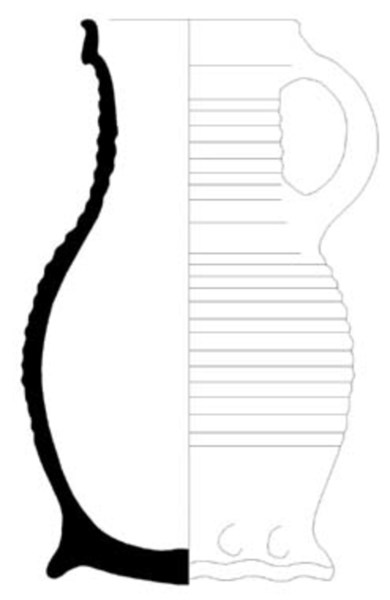 | 4b | bolle kan met vrijwel cilindrische hals en hoge kraagrand, met door twee ribbels afgezette gladde zone op schouder |