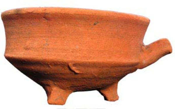 | 4b | diepe ronde vuurtest met scherpe knik bodem-wand en rechte rand, poten |